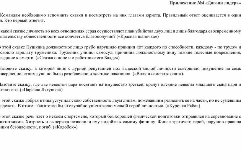 Командам необходимо вспомнить сказки и посмотреть на них глазами юриста. Правильный ответ оценивается в один балл. Кто первый ответит.