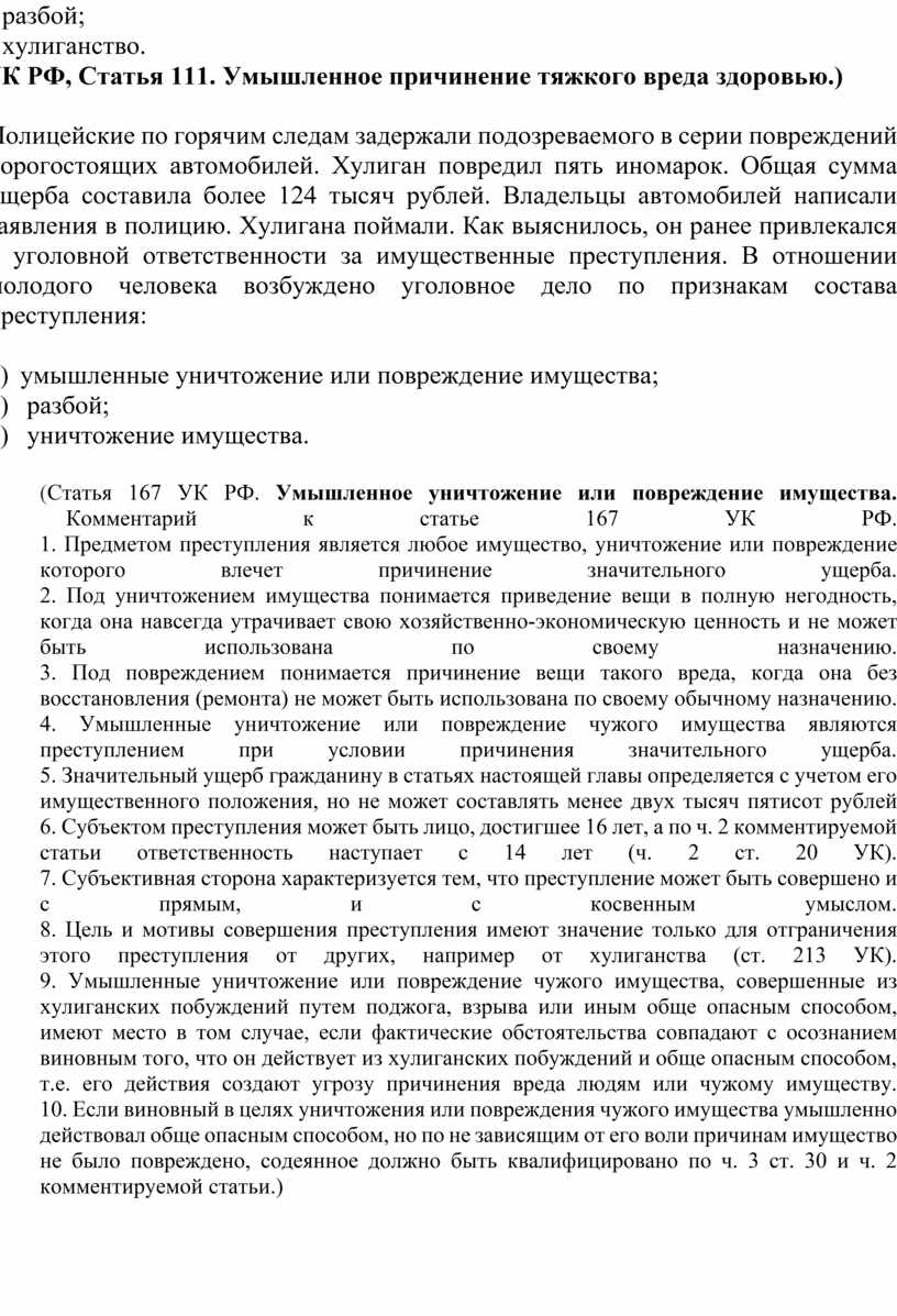 167 УК РФ. Умышленное уничтожение или повреждение имущества.