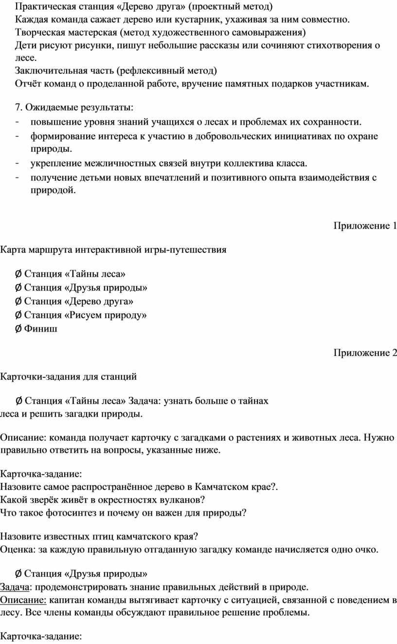 - карта маршрута (Приложение 1); - карточки-задания (Приложения 2);