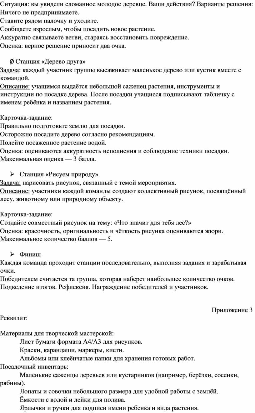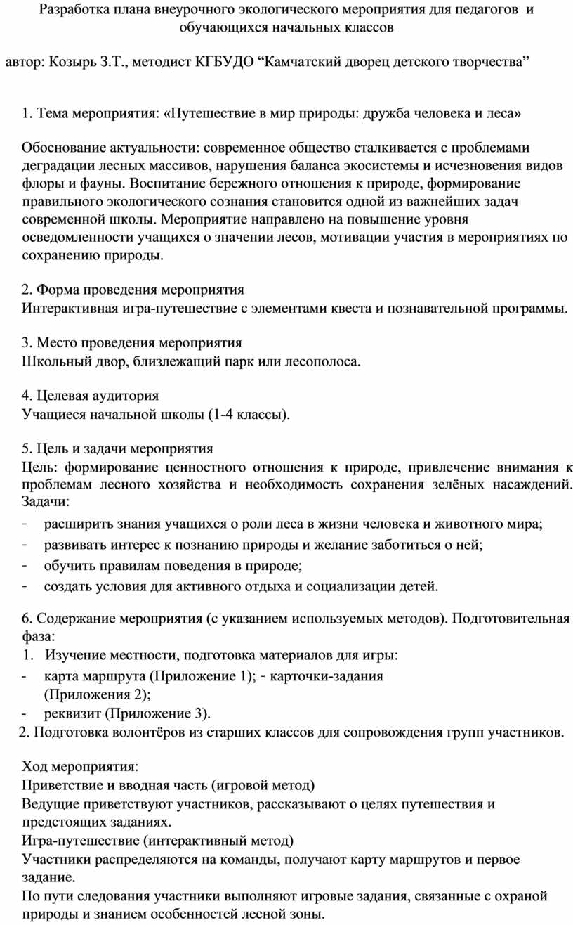 Разработка плана внеурочного экологического мероприятия для педагогов и обучающихся начальных классов