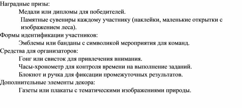 Памятные сувениры каждому участнику (наклейки, маленькие открытки с изображением леса).