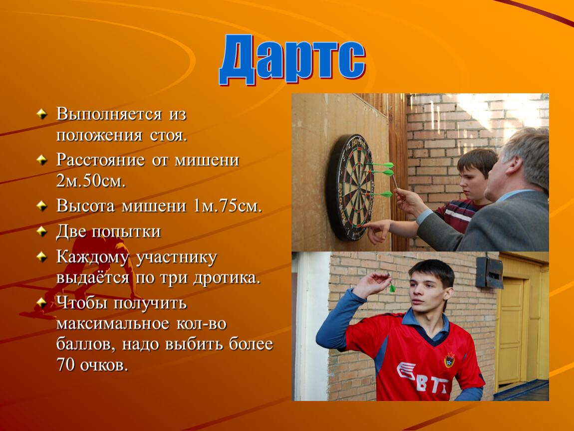 Каждому участнику выдаётся по три дротика.