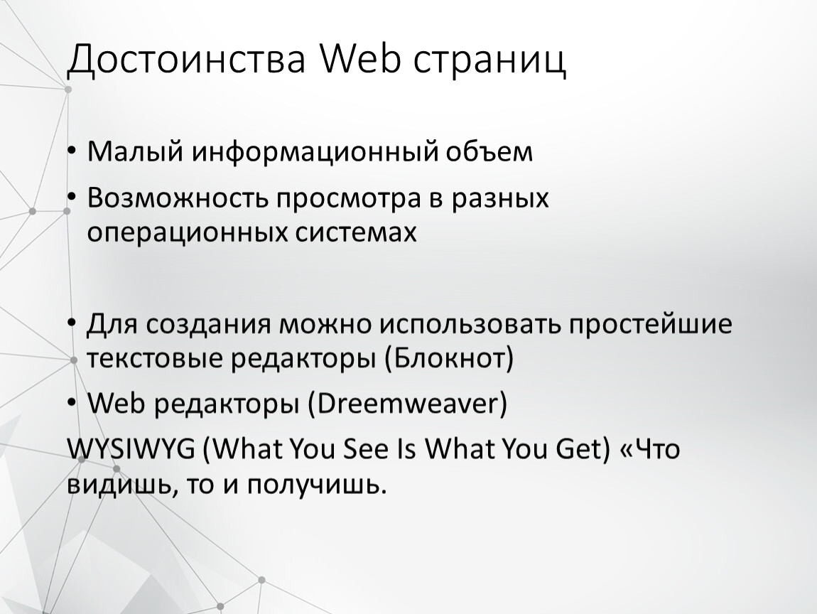 Web- страницы создаются с использованием языка разметки гипертекстовых документов HTML (Hyper Text Markup Language)