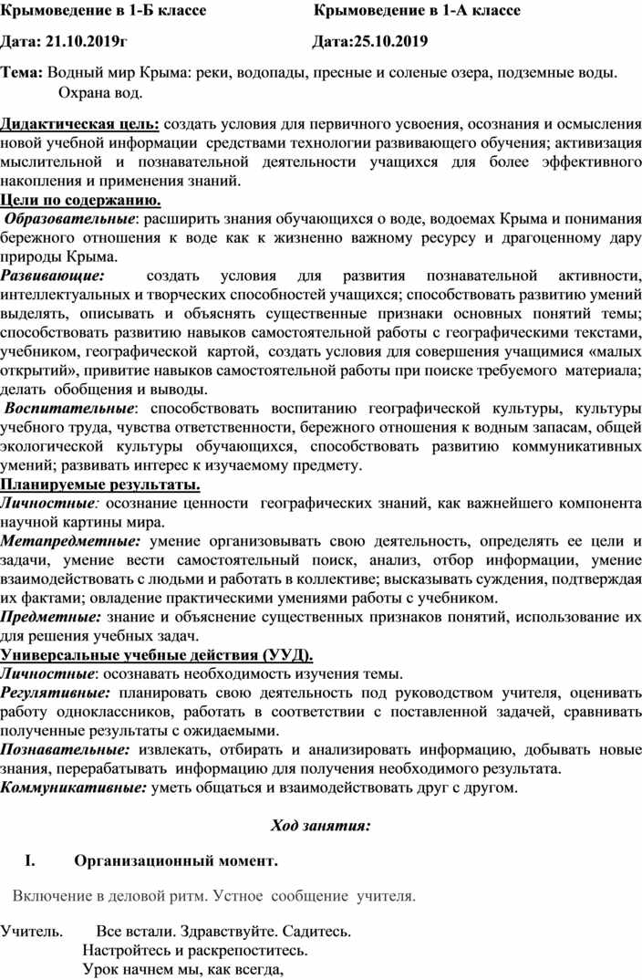 Крымоведение в 1-Б классе Крымоведение в 1-А классе