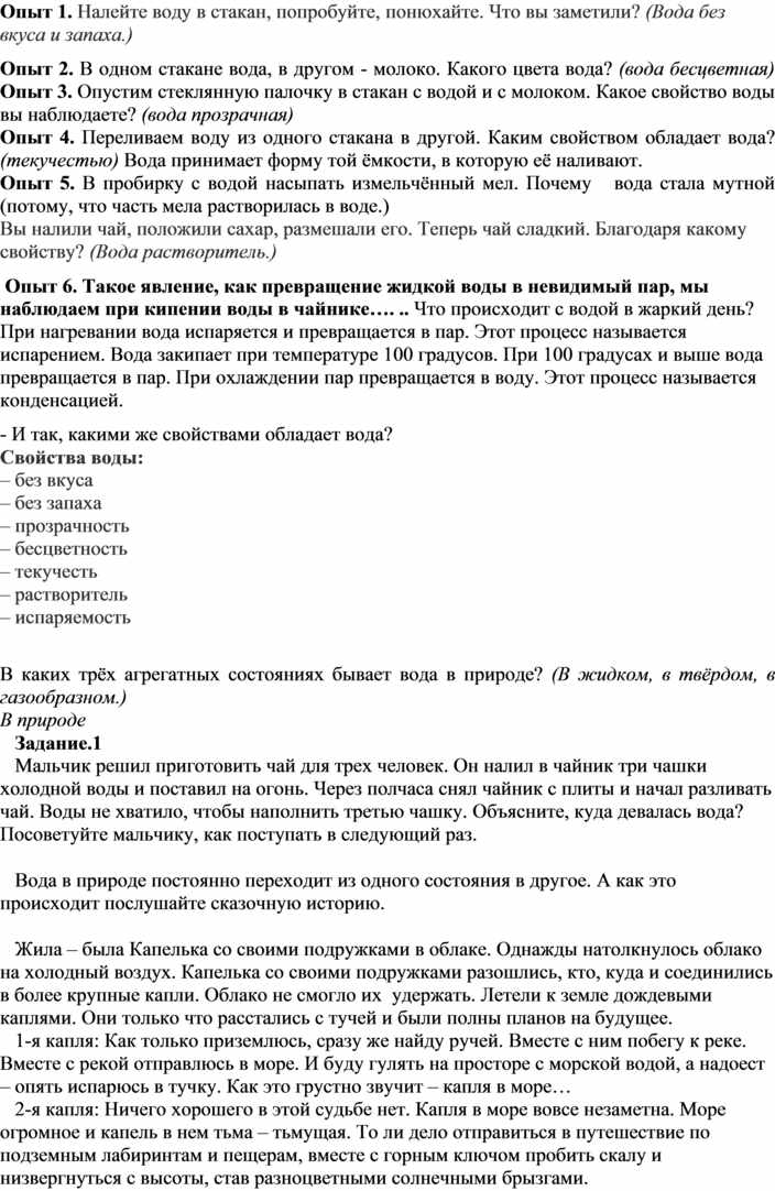 Опыт 1. Налейте воду в стакан, попробуйте, понюхайте. Что вы заметили? (Вода без вкуса и запаха.)