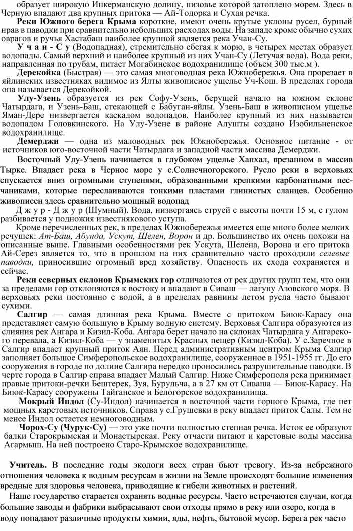 Тема: Водный мир Крыма: реки, водопады, пресные и соленые озера, подземные воды. Охрана вод.