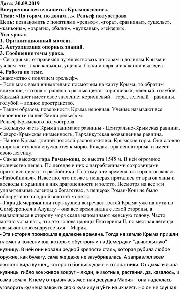 Цель: познакомить с понятиями «рельеф», «гора», «равнины», «ущелье», «каньоны», «овраги», «балки», «вулканы», «гейзеры».