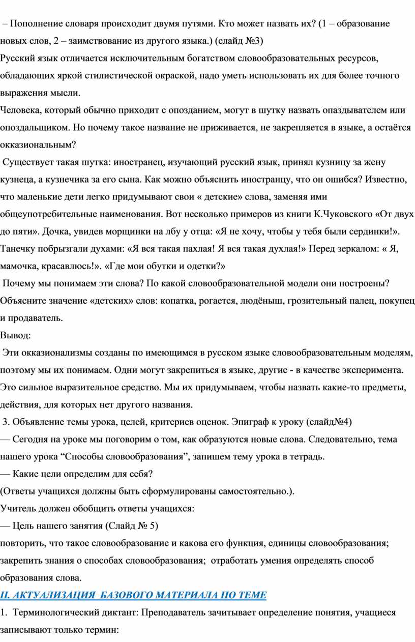 – Для чего нам необходимо изучать способы словообразования? (Для обогащения словарного состава русского языка.)