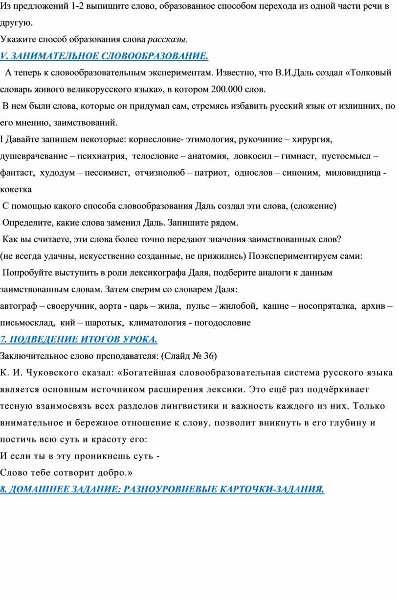 V. ЗАНИМАТЕЛЬНОЕ СЛОВООБРАЗОВАНИЕ.