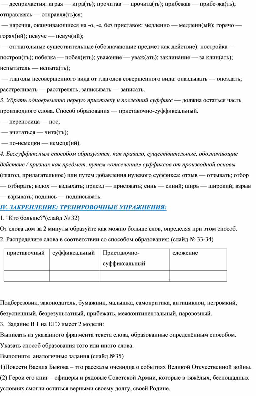 2. Распределите слова в соответствии со способом образования: (слайд № 33-34)