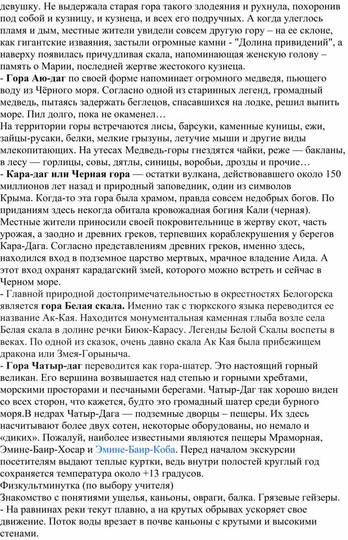 ·         Знакомство с понятиями ущелья, каньоны, овраги, балка. Грязевые гейзеры.