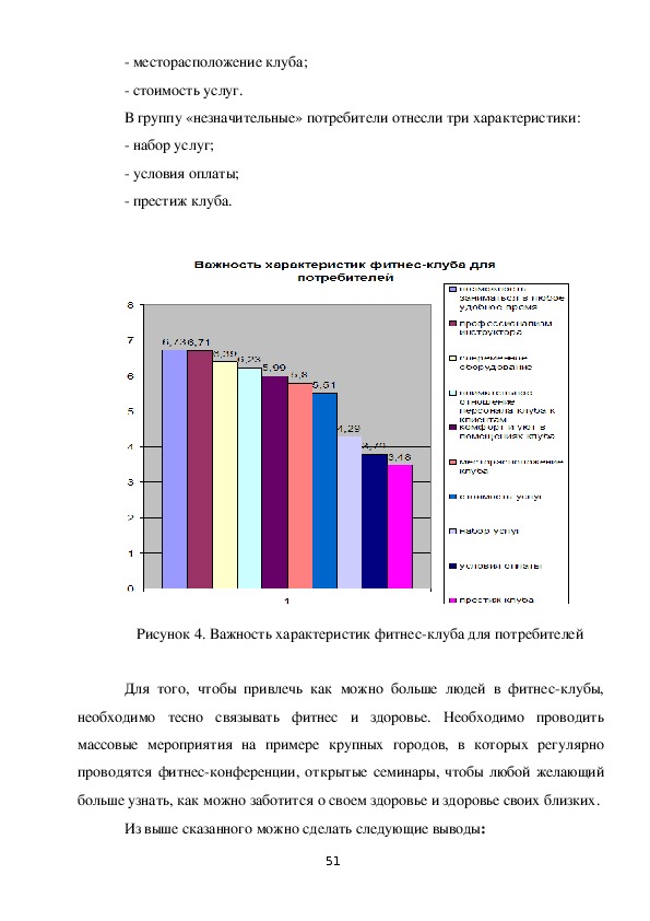 Рисунок 4. Важность характеристик фитнесклуба для потребителей