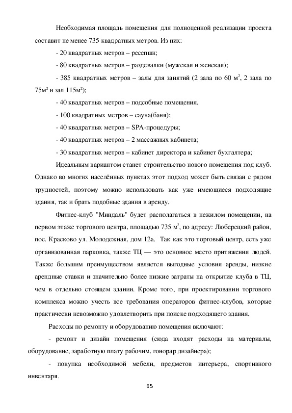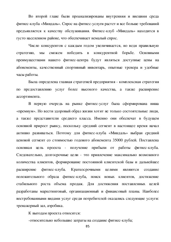 ГЛАВА 3 БИЗНЕСПЛАН СОЗДАНИЯ ФИТНЕС – ЦЕНТРА