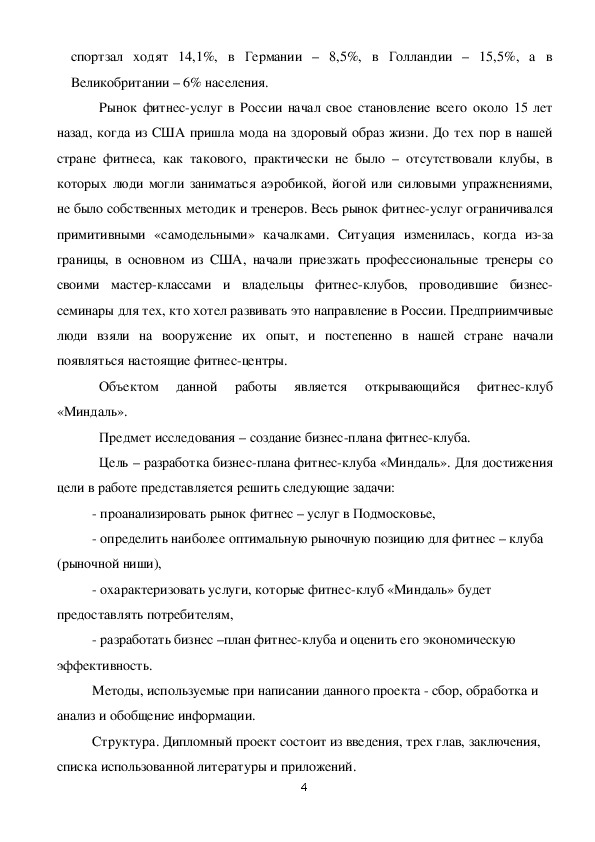 Предмет исследования – создание бизнесплана фитнесклуба.