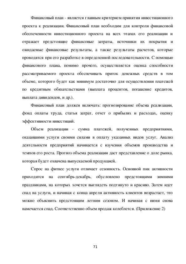 3.4. Маркетинговый план фитнесцентра…………………………………............603.5. Финансовый план фитнесцентра.…………………………………………......64