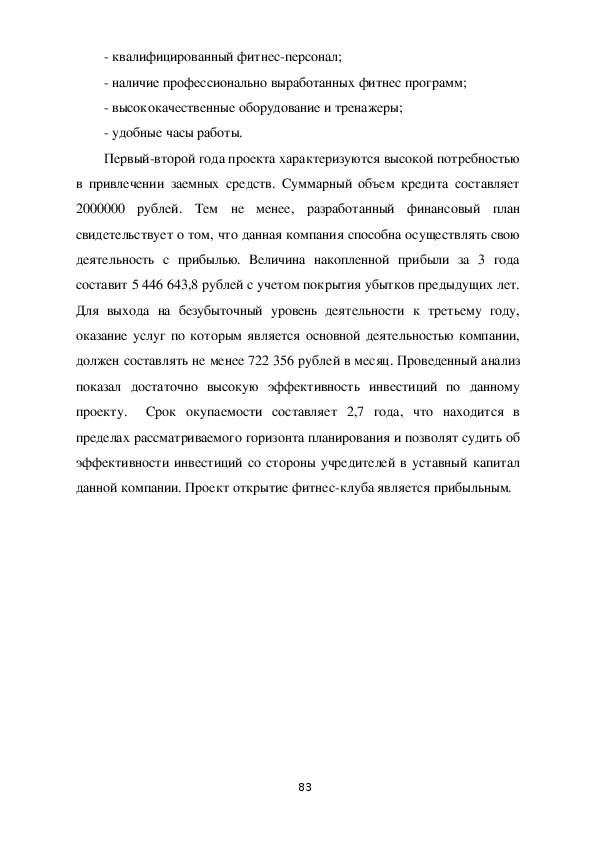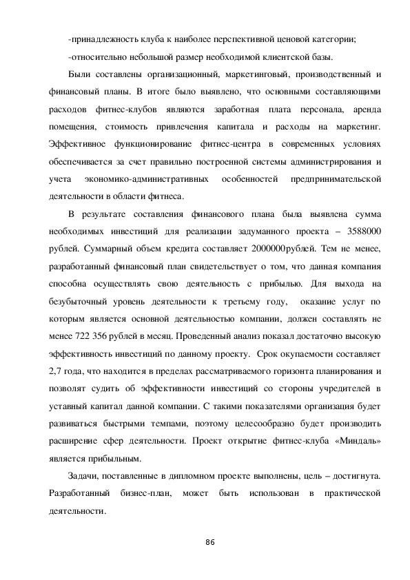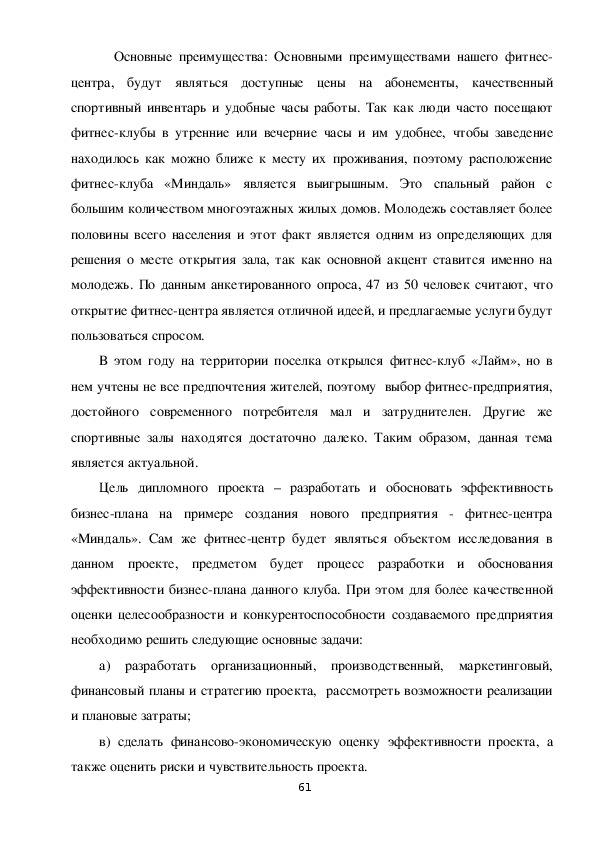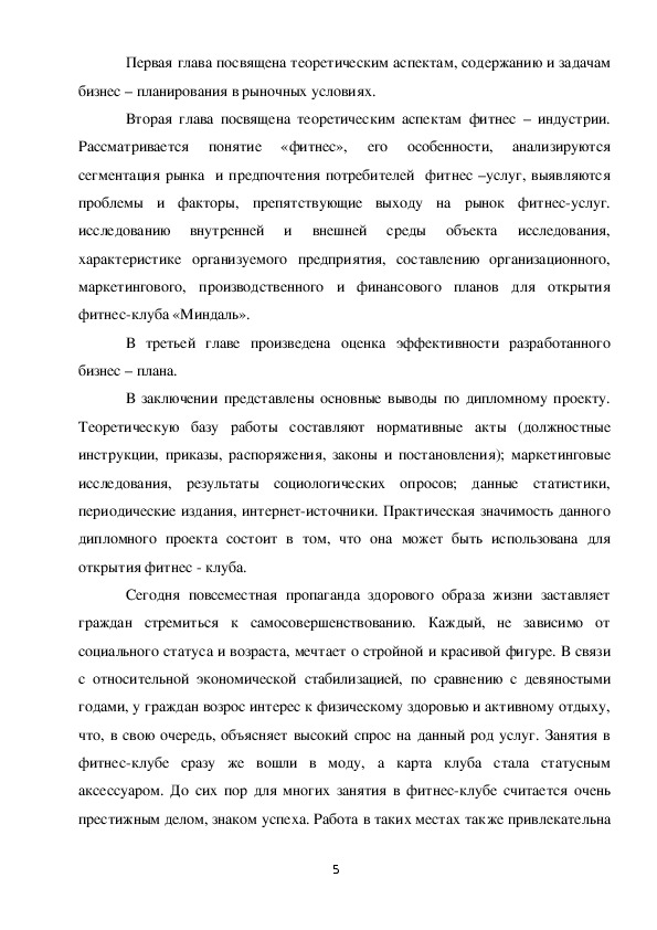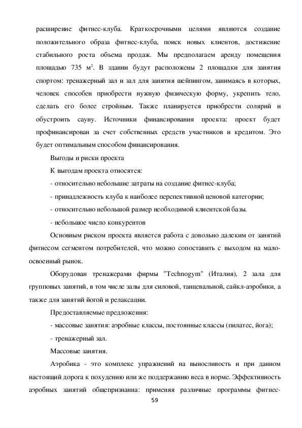 разработать бизнес –план фитнесклуба и оценить его экономическую