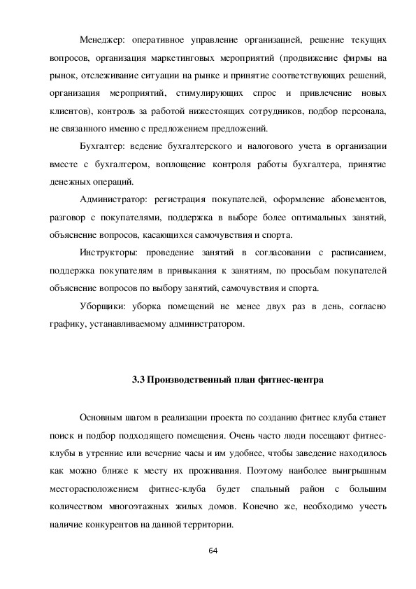3.3. Производственный план фитнесцентра…………………………...………...58