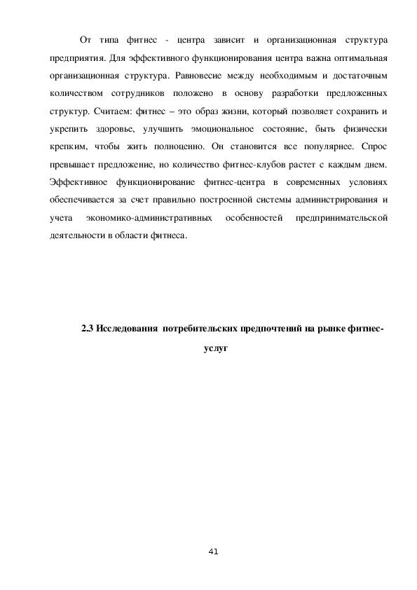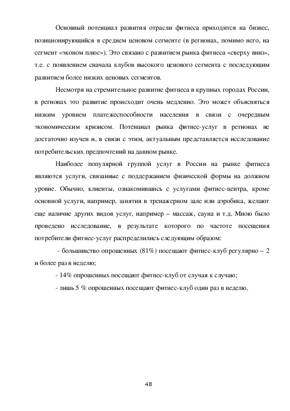 2.3 Исследования потребительских предпочтений на рынке фитнесуслуг....39