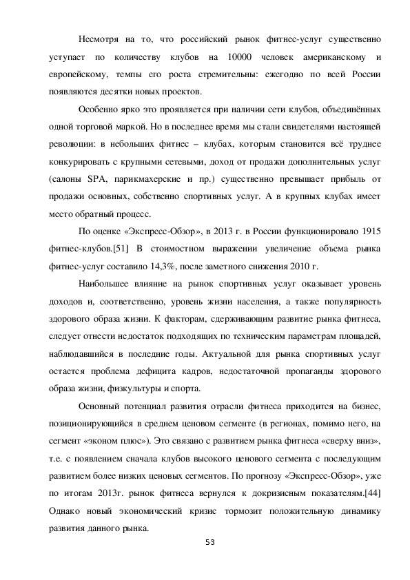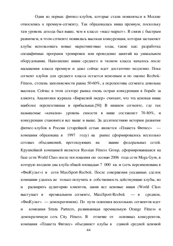 сегмент «эконом плюс»). Это связано с развитием рынка фитнеса «сверху вниз»,