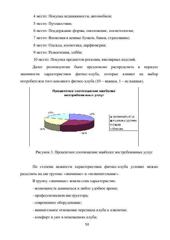 (50%), массаж (41%). Меньшим спросом пользуются услуги солярия и