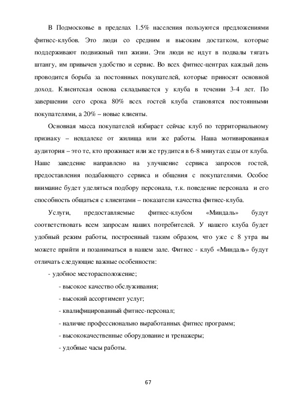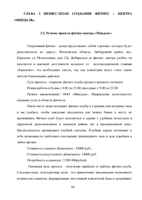 3.1. Резюме проекта фитнесцентра «Миндаль»…..…………………………….53