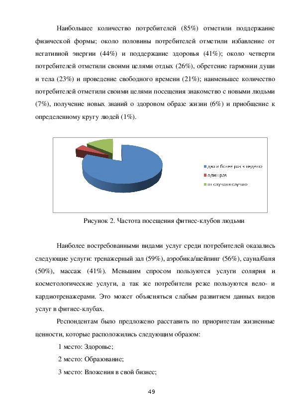 Рисунок 2. Частота посещения фитнесклубов людьми