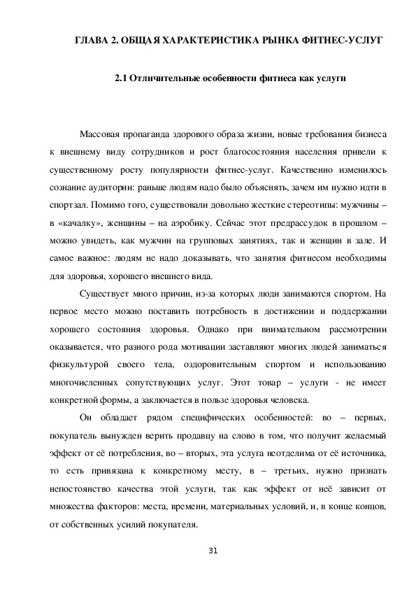 ГЛАВА 2. ОБЩАЯ ХАРАКТЕРИСТИКА РЫНКА ФИТНЕСУСЛУГ…..30