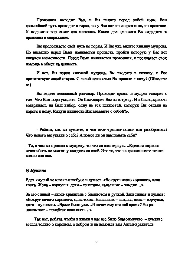 дороге к нему. Какую ценность Вы возьмете с собой?».