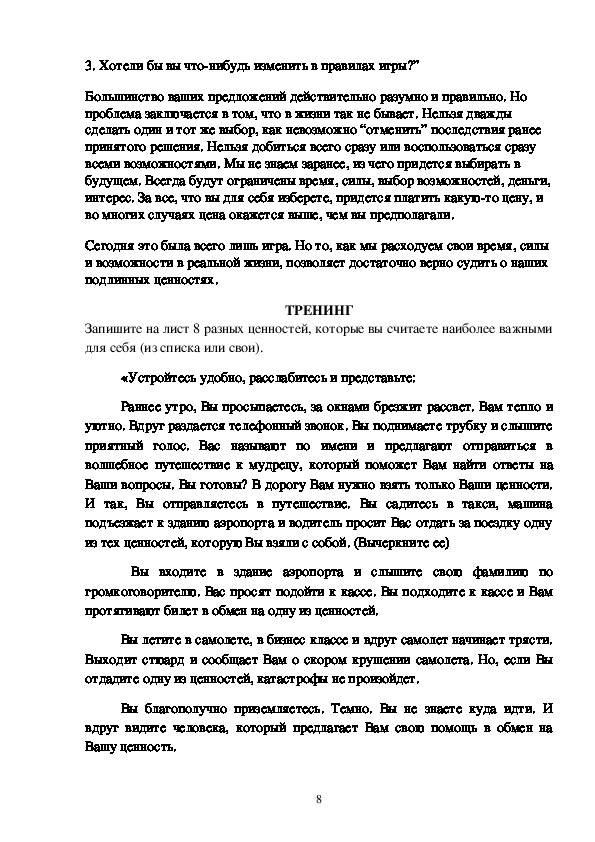 Запишите на лист 8 разных ценностей, которые вы считаете наиболее важными