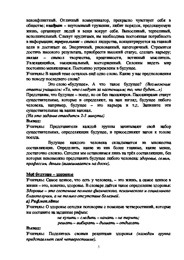 человека, например, будущее – это карьера и т.д. Запишите эти