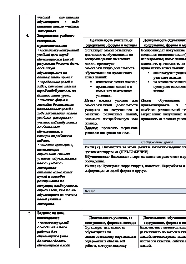 задания для закрепления;