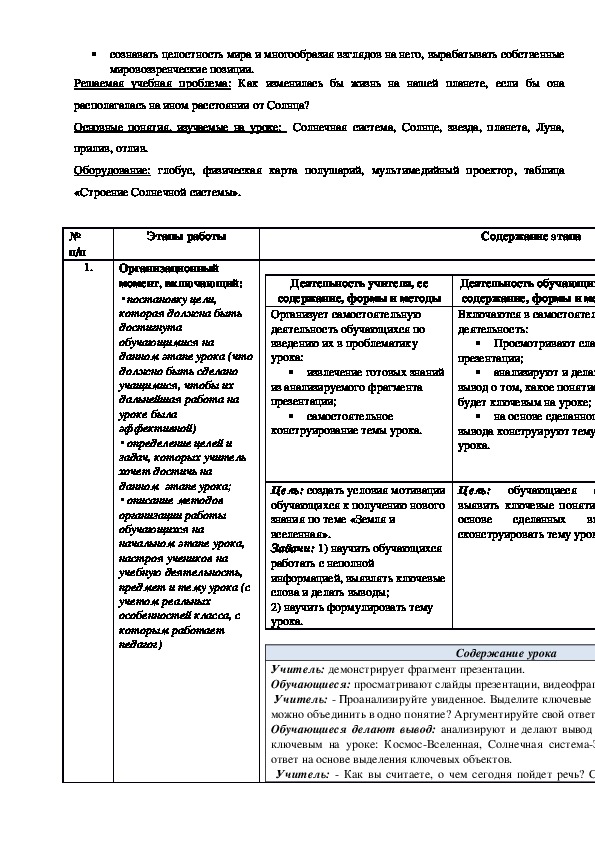 Оборудование: глобус, физическая карта полушарий, мультимедийный проектор, таблица