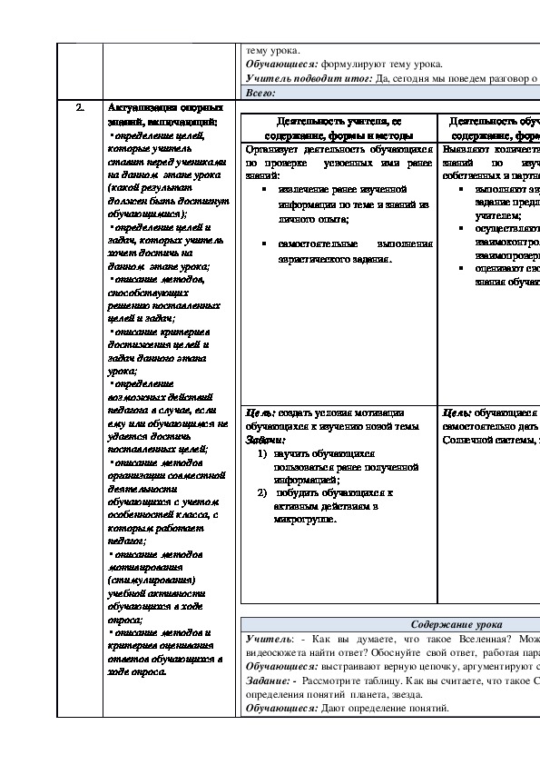 Тема урока: Земля и Вселенная