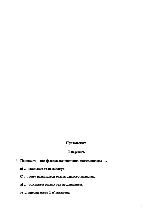 Выбрать из предложенных величин ту, которая обозначает плотность (слайд 2):