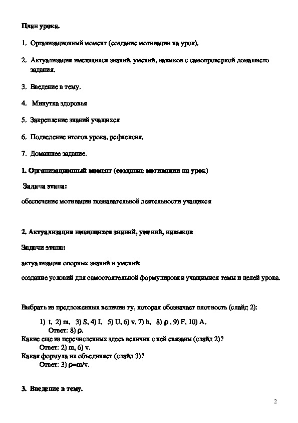 Цель урока: привести в систему знания учащихся по теме “Плотность вещества”.