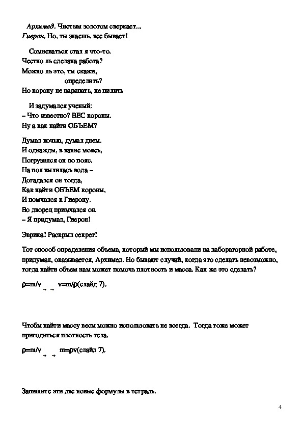 примеси? Так произошло с Архимедом (легенда об Архимеде – слайд 4,5,6).
