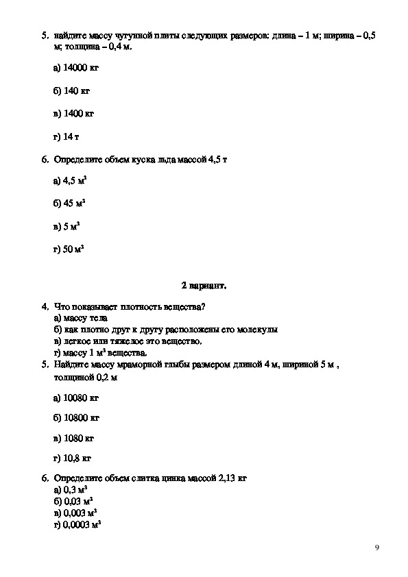 2. Найдите массу чугунной плиты следующих размеров: длина – 1 м; ширина – 0,5