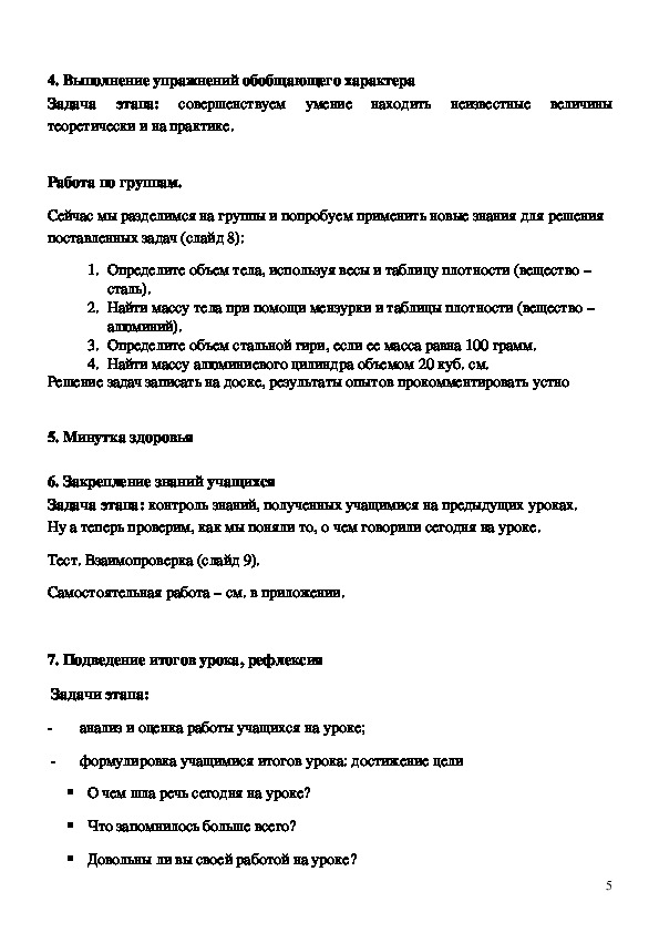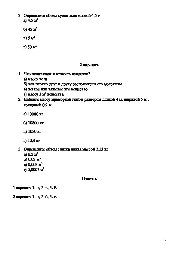 1. Определите объем тела, используя весы и таблицу плотности (вещество –