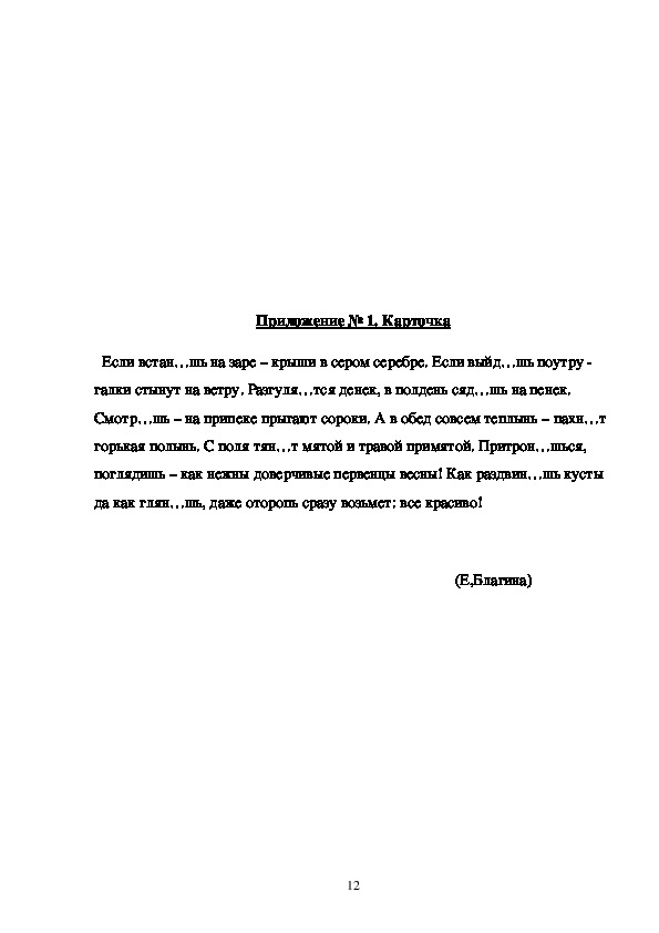 Н.М.Шанский/ 2е изд. – М.: Просвещение, 2012, карточка (приложение № 1)