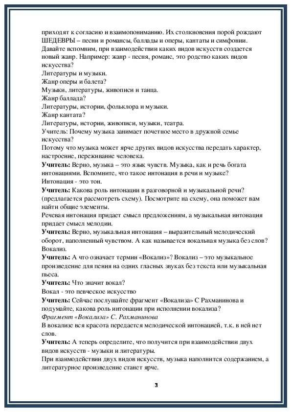 Учитель: Сейчас послушайте фрагмент «Вокализа» С Рахманинова и