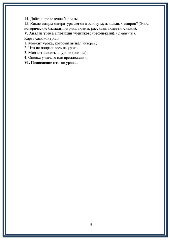 V. Анализ урока с позиции учеников: (рефлексия). (2 минуты).