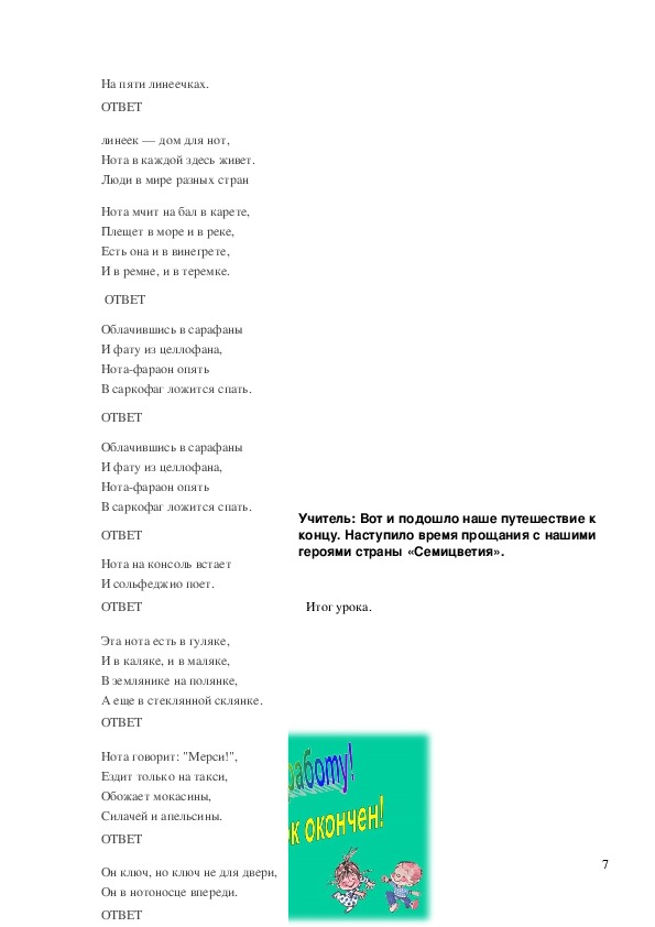 Оборудование к уроку: фортепиано, музыкальный центр CD - диски, компьютер, телевизор, таблицы, карточки с нотами.