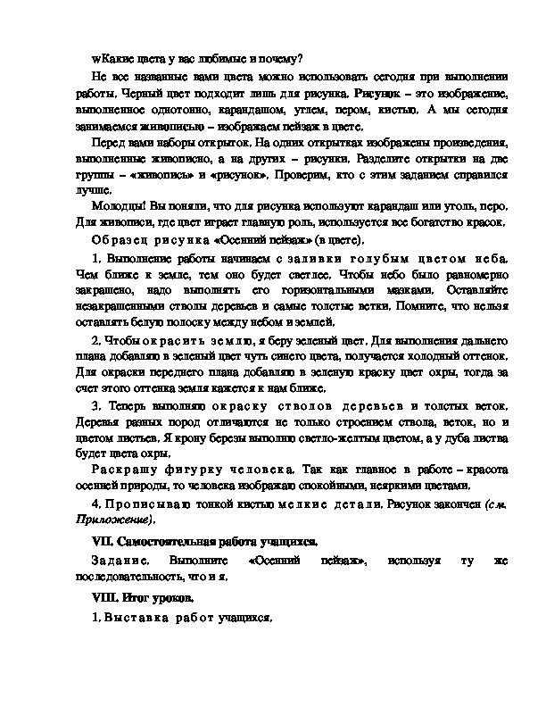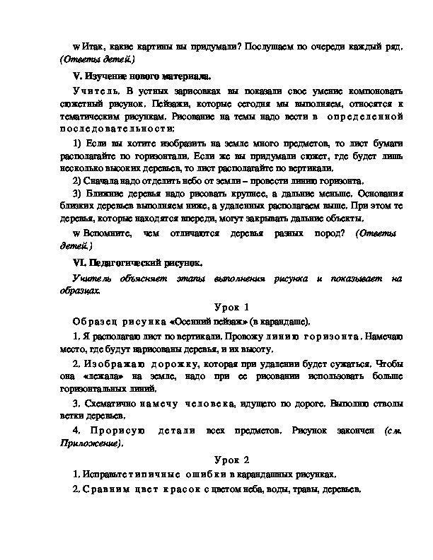осень»; В. Серова «Октябрь. Домотканово»; образцы педагогического рисунка