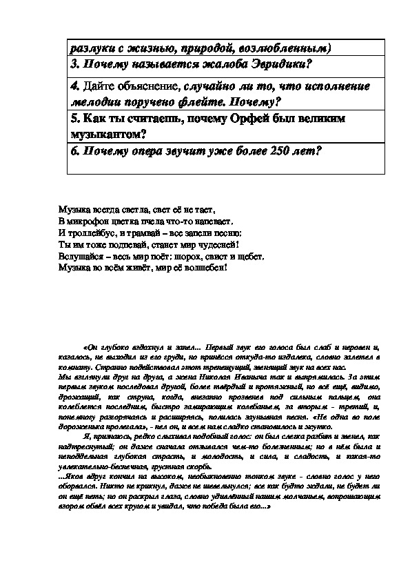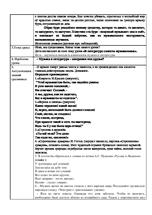 Второй урок по теме «Музыка звучит в литературе»