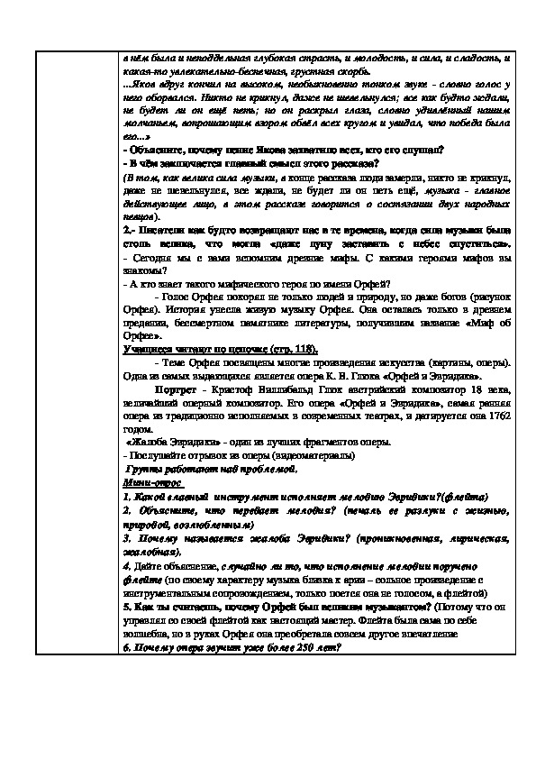 3. Почему называется жалоба Эвридики? (проникновенная, лирическая,