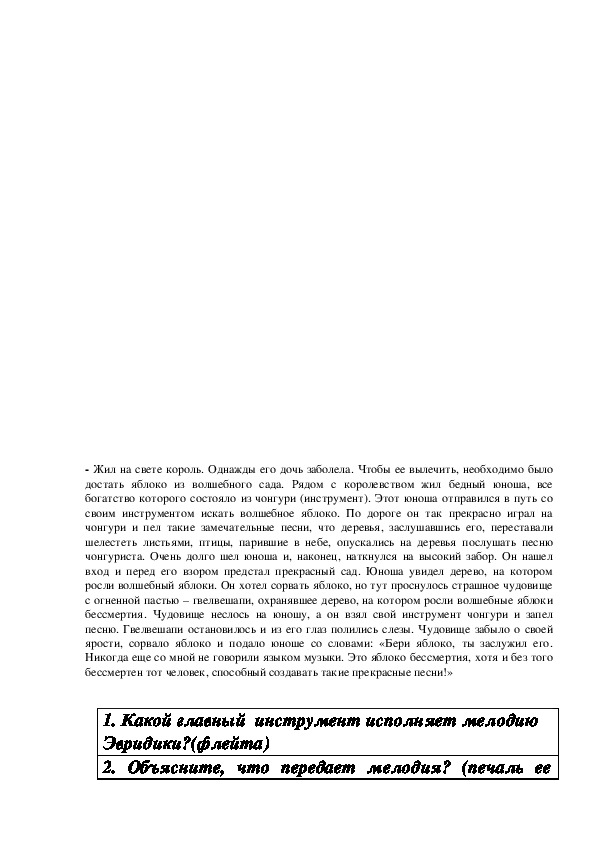 1. Какой главный инструмент исполняет мелодию Эвридики?(флейта)