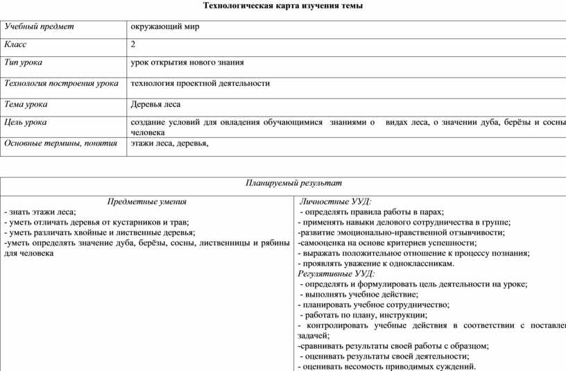 Технологическая карта урока окружающего мира «Деревья леса» ( 2 класс)