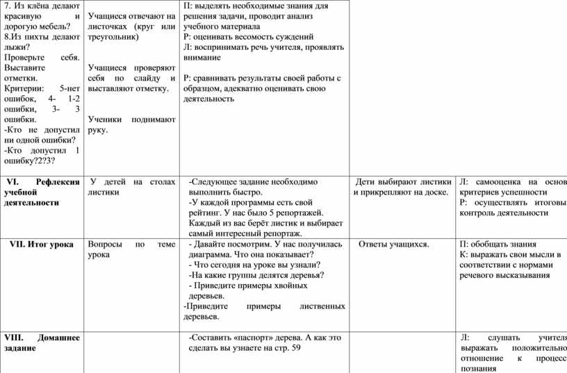 VI. Рефлексия учебной деятельности |