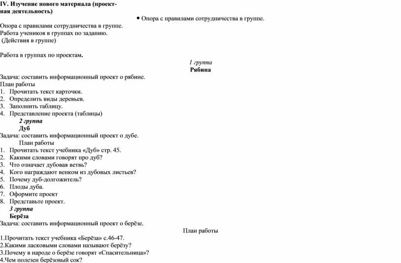 IV. Изучение нового материала (проект- ная деятельность)