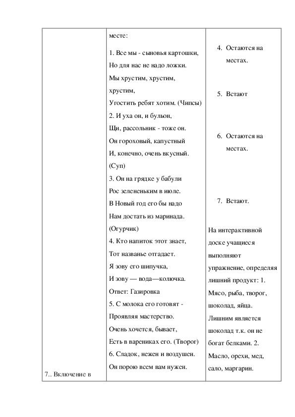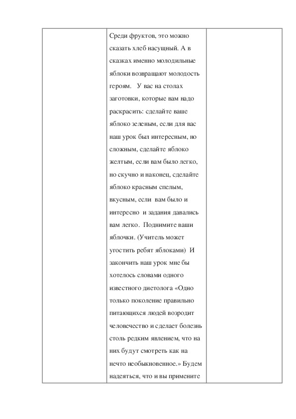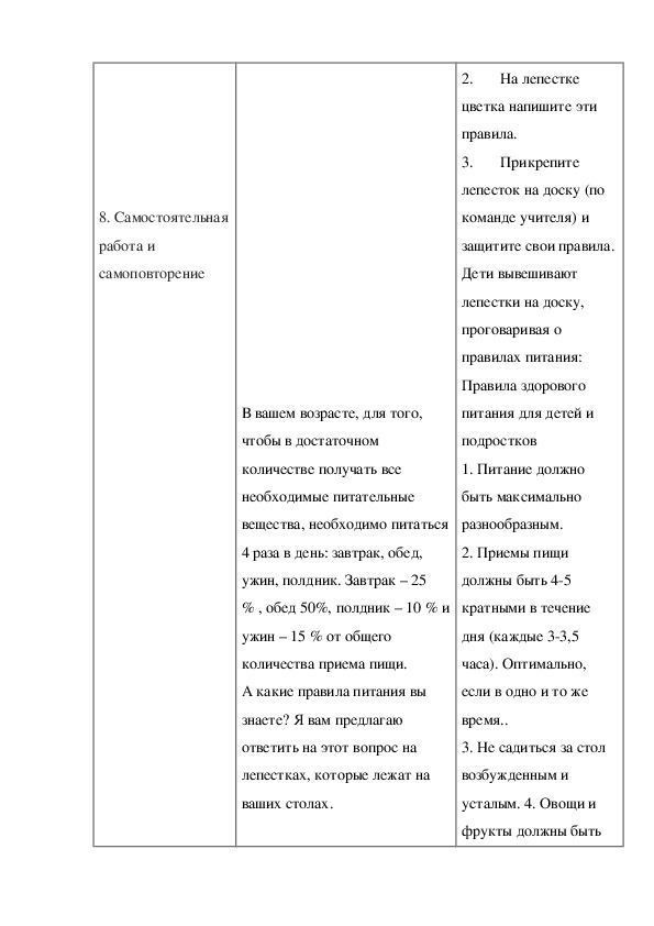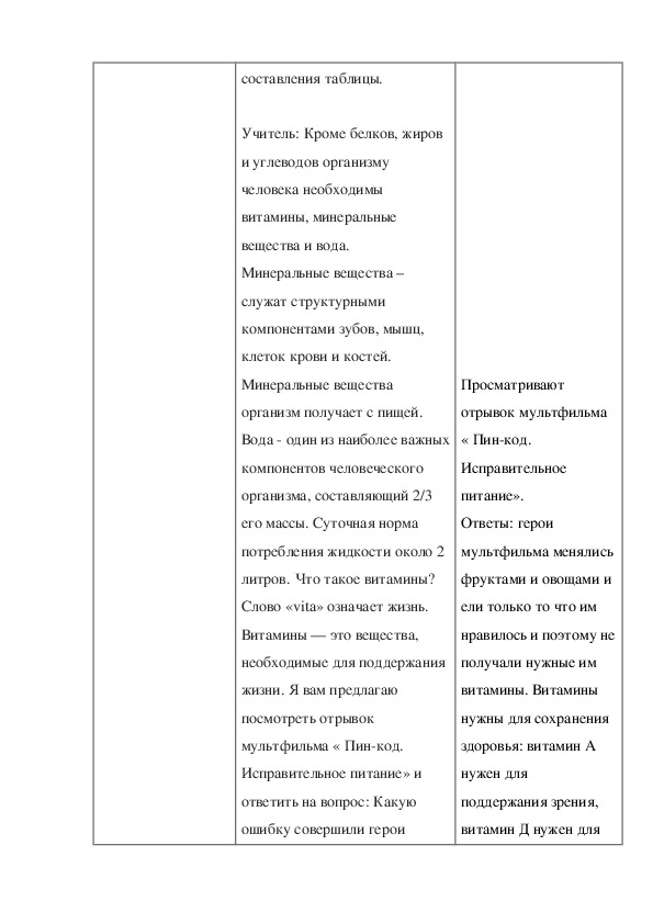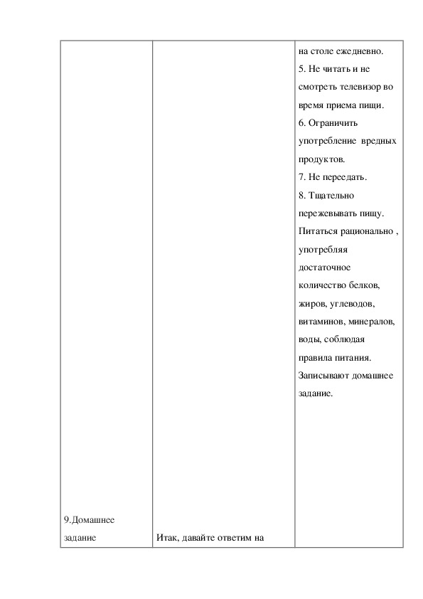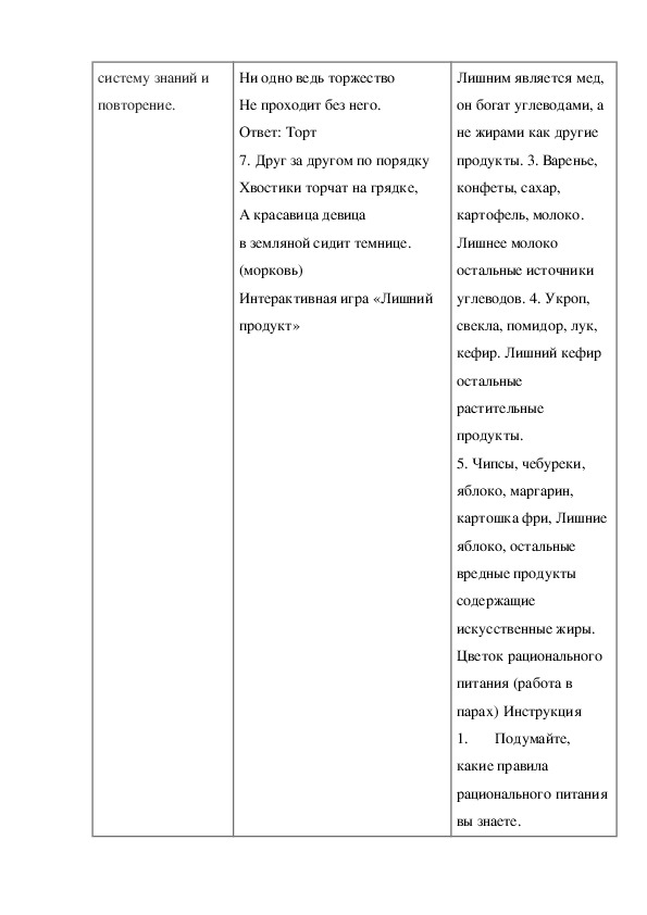 рацион питания, развитие умения обобщать материал по данному вопросу,